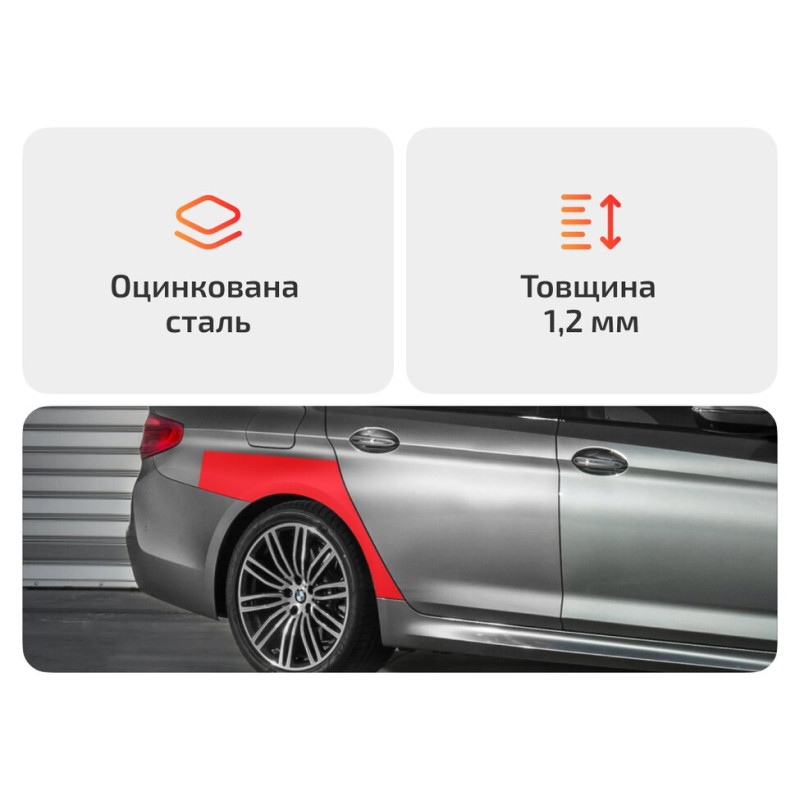 Ремкомплекти задніх арок виконані з високоякісної оцинкованої сталі товщиною 1,2 мм, що гарантує термін служби до 10 років або в 5–10 разів довше, ніж у деталей зі звичайної холоднокатаної сталі.